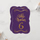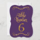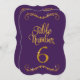 Tabela Número 6 COLLECTION: Em beringelas escuras violeta roxa com um aspecto metálico brilhante ouro com um efeito dimensional perfeito para coordenar com uma ampla variedade de casamentos, chás de panela, eventos comerciais e de recepção formal. Este é um tipo de letra caligráfica com letras de mão com roldanas, espirais e uma elegante letra de escrita manual. Há uma bela espiral de folha que floresce no topo e no fundo que acentua a forma da borda recortada. Você precisará de um número de suporte ou quadro para usá-los de forma eficaz - que não são fornecidos. Disponível nos números de estoque de 1 a 25, podemos adicionar números se o evento for grande o suficiente para exigi-los. Também podemos fazer combinações de cores personalizadas por uma pequena taxa adicional. COR PALETTE: Olho metálico Dourado e preto-e-claro