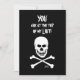 O Convite de festas do Dia de as Bruxas engraçado assustador do crânio diz que você está no topo da minha lista! Parece uma ameaça! A festa assustadora do Dia das Bruxas apresenta um crânio de ressonância dizendo a um convidado que ele ou ela está no topo de sua lista! Yikes! Mas do outro lado, parece que é a lista de convidados... os seus amigos devem correr...hetero para o lugar onde toda a diversão vai acontecer na noite de 31 de outubro, "All Hallow Eve"! Sua casa! Procurando um convite divertido para a festa do Dia das Bruxas? Basta inserir suas informações nos slots fornecidos neste modelo, e pegar o crânio.. quero dizer a bola...rolando! Mude facilmente a redação, se assim o desejar.