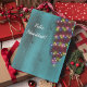 Envie alegria natalina a amigos e entes queridos com este cartão com a minha ilustração de uma ristra de pimenta com luzes natalinas contra uma porta turquesa.
