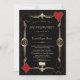 Glam Casino Art Deco 20s com design de cartão temático. Apresenta o estilo antigo de deco artístico, uma antiga estrutura de ouro falsa de Hollywood, de 1920, com dourado Fleur-de-lis, par de dados, trajes de jogo (simulando cartões de jogar), sobre fundo de decoração de Arte preta dourada. Use a ferramenta Personalizar para adicionar suas informações. Para mais, visite, por favor, minha Coleção de Solteiros Casino.