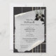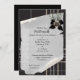 O convite do Robbie Burns Black Tartan apresenta imagens de Heather branca amarradas com um clássico arco de veludo preto. Por cima, sua inicial é centrada em dentro a um pino Celta prateado. Um delicado pergaminho rolante sobrepõe o elegante design de tartan preto. O reverso traz as palavras para o famoso poema Robert Burns, Auld Lang Syne. Totalmente personalizável e completamente único - este é o convite perfeito para uma comemoração noturna Chic Burns.