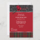 Uma simples rosa vermelha está sobre rosas pretas em tecido preto de veludo preto queimado e ricamente rendido e o tartan Real Stuart completa a borda inferior. As partes superior e inferior são acentuadas com uma folha prateada a brilhar e um efeito de cadeia. Linhas do famoso poema "Vermelho, Rosa vermelha" da Bards, realçadas em uma fonte vermelha brilhante de rolagem, percorrem o topo. A parte traseira da placa apresenta o poema no cheio, mas é facilmente alterada. Este convite pode ser personalizado para se adequar a um evento formal ou casual do janto Robert Burns.