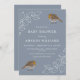 Convites Robin Botânico Dusty Chá de fraldas Azul