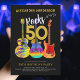 Rocha e rolo 50º convite de aniversário de guitarras psicodélicas fundas e legal tipografia de ouro 50 Rochas sobre tema negro. Violão elétrico colorido com padrão de chama de Fogo e guarda vermelha de picada, violão semissústico multicolorido e ilustração de arte acústica clássica psicodélica com tipografia legal personalizada negra e dourada. Esse modelo fácil de usar cria o convite perfeito para celebrar cinquenta no estilo rock n roll e é ideal para um guitarrista, músico e amante da música. Qualquer guitarrista lhe dirá que você nunca pode ter muitas guitarras. Este legal instrumento musical moderno design comemora a energia musical deste maravilhoso instrumento musical e é a forma perfeita de celebrar o quinquagésimo aniversário. Arte original da artista Catherine Sweetman