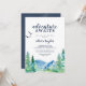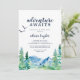 Esta aventura da Montanha Rocky aguarda o convite do chá de fraldas é perfeita para um evento ao ar livre. O design apresenta uma paisagem de natureza selvagem pintada, azul e verde, com pinheiros de aquarela, pássaros e montanhas. O convite é perfeito para um chá de fraldas, formatura, festa de aposentadoria e muito mais!