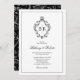 Mergulhe no reino da elegância e romance com nossos Convidados de Casamento Monograma Rococo. Feitos com precisão, esses convites apresentam uma mistura harmoniosa de um fundo branco simplista com o atrativo de um quadro de ornamentado preto, com suas iniciais como peça central. Nosso modelo de casamento personalizável permite que você faça seu toque pessoal em todos os detalhes. Ao contrário, há um lindo padrão ornamental.
