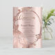 Vestido brilhante elegante e espirros no convite de festas de ouro rosa.