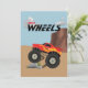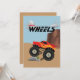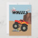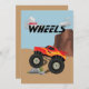 Convites de festa de aniversário de rodas de monstro laranja, amarelo, vermelho, verde.