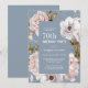 Um elegante convite de aniversário de 70 floral de aquarela, este design apresenta belos rosas de aquarela em rosa-gelo de inverno sobre um fundo azul empoeirado. Todo o texto pode ser personalizado com o texto de sua parte personalizada, incluindo a idade. Você também pode usar este modelo de convite para outras idades personalizando o número 70 para o número de idade desejado.