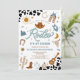 Saddle up for a fun-filled celebration with this western rodeo themed 2nd birthday party invitation! Featuring cowboy hats, boots, horseshoes, cacti, guitars, and a sheriff badge against a bold cow print background, this design perfectly captures the spirit of the Wild West. The playful fonts and rustic illustrations make it ideal for little cowboys and cowgirls. Personalize easily with your party details and create a memorable keepsake for guests. Perfect for rodeo, western, or country-themed birthday parties.