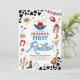 Saddle up for a fun-filled celebration with this rodeo-themed first birthday invitation! Featuring cowboy hats, boots, lassos, and Western-inspired details, this festive design is perfect for little cowboys and cowgirls. The bold cow print background and colorful illustrations create a playful, rustic vibe that sets the tone for an unforgettable party. Personalize with your event details to make it truly unique and give guests a charming keepsake.
