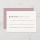 Esta placa RSVP de casamento apresenta uma aquarela empoeirada, cor-de-rosa-pincel e creme em emparelhamento com um design moderno minimalista. Edite todas as palavras do evento e altere as cores para corresponder ao estilo do evento. Use para o seu casamento, aniversário, chá de panela ou qualquer outro evento especial.