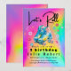 Um simples design moderno com uma aquarela Roller Skating sobremesa rosquinha Aniversário roxo cor-de-rosa púrpura convite para comemoração de aniversário com a família e amigo para mulheres e raparigas para amantes de skates