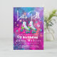 Um simples design moderno com uma aquarela Roller Skating sobremesa rosquinha Aniversário roxo cor-de-rosa púrpura convite para comemoração de aniversário com a família e amigo para mulheres e raparigas para amantes de skates