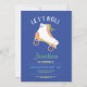 Convite à festa azul de aniversário do RollerSkate. Qualquer Idade MUDA O TEXTO PARA ADEQUAR A SUA FESTA E impressão traseiro incluso.