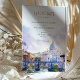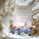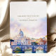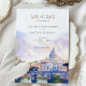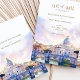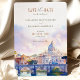 Anuncie seu casamento em estilo com este elegante convite "Salve a Data", com uma ilustração em aquarela da Rua. Maciços de lavandas, cor-de-rosa pastel e céu azul criam um ambiente romântico e artístico perfeito para um casamento de destino. A tipografia refinada e o cenário pitoresco captam a beleza eterno de Roma, dando aos hóspedes uma prévia da experiência inesquecível que os aguarda. Ideal para casais planejando um casamento na Cidade Eterna.
