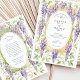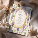 Drape your wedding announcement in pure romance with this exquisite Art Nouveau-inspired invitation. The design features breathtaking, hand-painted watercolor wisteria, cascading in lovely shades of lavender, lilac, and purple. These beautiful blossoms and their delicate green leaves are elegantly intertwined with an architectural frame in a soft, warm gold wash, enhanced with fine line details. A central oval, outlined with a charming dashed border, beautifully showcases your wedding details, creating a look of timeless sophistication. This invitation is perfect for a spring or summer garden wedding, a romantic vineyard celebration, or for any couple with a love for classic art and enchanting florals.