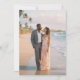This wedding invitation features a romantic beach scene with two individuals standing close together on the sandy shore, capturing an intimate moment against gentle ocean waves and palm trees. The color palette is soft and natural, blending warm beige tones of the sand with cool blues of the ocean and muted greens from the palm trees, creating a serene atmosphere. The design uses a realistic art technique to emphasize lifelike details and textures, evoking a sense of tranquility and connection. Perfect for couples seeking a peaceful and inviting vibe, this invitation celebrates love in a picturesque coastal setting.