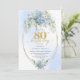 Convites Romantic Dusty Blue Floral Gold 80th Birthday