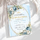 Ideal for classic, modern, garden, or elegant Quinceañera themes, this invitation combines delicate blue hues with warm gold details to achieve a look that feels both sophisticated and youthful. The greenery and eucalyptus bring freshness and balance, while the gold accents add just the right amount of sparkle for a meaningful 15th birthday celebration. Whether you are planning a formal Quinceañera, a traditional fiesta, or an intimate family gathering, this invitation sets a beautiful and memorable tone.