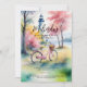 Romantic Pink Lighthouse Landscape with Cute Bicycle Bachelorette Weekend Invitation Design.