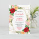 This fun and whimsical birthday party invitation features watercolor red, pink and orange roses with foliage on a gold geometric frame. The text combines handwritten script and serif fonts for a stylish and modern look. This is perfect for a spring or summer rustic birthday party.
