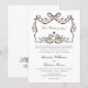 Announce your upcoming nuptials with this romantic and formal wedding invitation, showcasing a beautiful illustration of two swans with a red bow and heart detail. Encased within a whimsical floral and ribbon border, this design exudes classic elegance. The script font for the couple's names adds a touch of personal charm, while the formal wording ensures all essential details are clearly communicated. This invitation is designed to impress and set the perfect tone for your cherished wedding ceremony and reception.