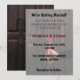 Design features a dramatic and romantic photograph of a hand holding two deep red roses tied with a soft ribbon, set against a dark rustic wooden door background. The rich contrast creates a timeless, emotional, and elegant wedding atmosphere — ideal for classic, romantic, vintage, or moody wedding themes.