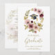 Convites Romantic Soft Floral Wreath Graduation Cap Design