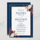 O convite para o casamento floral romântico elegante e moderno para aquarelas apresenta um buquê de burgundy / marsala, cor-de-rosa-pincel, rosas de aquarela de pêssego com folhagem correspondente em fundo azul marinho. Perfeito para um casamento no outono/no meio do verão. Por favor, encontre mais designs e variações na minha loja de "blisswedingpaperie". E fique à vontade para me contactar para mais personalizações ou itens correspondentes.