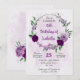 Belos convites de festas de aniversários românticos com flores roxas e algumas folhas verdes. PARA MAIS PRODUTOS CORRESPONDENTES, clique na coleção acima ou entre em contato comigo