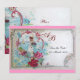 Elegante, sofisticado, vibrante e clássico design floral. Rosas vermelhas, rosadas, flores azuis com uma pomba branca carregando uma carta em uma paisagem marinha. Elaboração gráfica digital em estilo vintage por Bulgan Lumini (c) Fácil de personalizar com suas iniciais e texto próprio como cartão de anúncio de festa de casamento / cerimônia / cartões de lugar / cartões de "salve a data" / lembranças / cartões de agradecimento / chás de noiva / chás de bebê / aniversários / festa Sweet 16, Quinceanera, / Bat Mitzvah / formaturas / chás de noivado / aniversários de casamento / celebrações ou qualquer outro evento que você deseje!