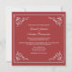 Os ornamentos antigos românticos em branco contra fundo vermelho profundo servem de enquadramento para este convite. Personalize totalmente com seus próprios nomes e informações. Um convite adequado para qualquer ocasião: casamentos, festas de noivado, uma data de salvamento ou um evento corporativo. Disponível em cores alternativas com produtos correspondentes.