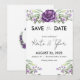 Convites Romântica Roxo Floral e Verde Salvar a Data