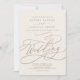Este romântico de marfim de ouro no cartão de convite de casamento é perfeito para um casamento simples. O clássico moderno design apresenta espirais de rico e turbilhões brancos com belíssima e elegante tipografia de folha de ouro de champanhe com letra falsa. Salve o papel, incluindo os detalhes na parte traseira do convite de casamento, em vez de em um cartão de cercado separado. Inclua as informações de RSVP também se seu convidado estiver respondendo eletronicamente (opcional). Nota: Este design não apresenta folha de ouro real. É um gráfico de alta qualidade feito para se parecer com folhas de ouro.