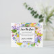 Belo romântico salve a data das flores quentes multicoloridas com sotaques pálidos roxos em um belo fundo floral para você personalizar com seus detalhes do dia do casamento. Isto é parte de uma suíte de casamento, um terno inteiro para outros designs florais correspondentes. design de excelente de de Designs TLS.