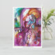 Cena da varanda da tragédia Romeu e Julieta de William Shakespeare .Pintura contemporânea original em aquarela com folha de ouro , prata e cores iridescentes em roxo brilhante , rosa, verde, laranja amarelo , cores azul-turquesa .Pintura de Bulgan Lumini (c).