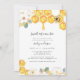 Este convite ao chá de fraldas 'doce como as abelhas' apresenta mel doce, biqueirão e primavera inspirado nos florais amarelos. Edite facilmente todos os textos deste convite para melhor atender às suas necessidades.