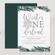 Este primeiro convite de aniversário apresenta um pinheiro verde profundo de inverno com salpicos de prata e um floco de neve com brilho prateado e o ditado "Winter Onderland" Este design neutro por gênero é perfeito para uma celebração de primeiro aniversario temida no inverno ou no feriado de Natal.
