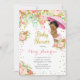 Chá de fraldas de guarda-chuva Convite Dourado Glitter com lindo rosa de ouro falso e confete de ouro