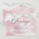Pérolas geometricamente facetadas emolduradas em ouro branco - sobre uma textura de vidro fosco opalescente de um lindo rosa sherbet é ultra moderno e chique. "Mudança" em caligrafia elegante - Se você já enviou os convites e teve que pausar inesperadamente a data do seu grande evento, envie estes aos seus convidados. Design Original por ©WhimsicalArtwork™tric