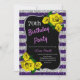 Elegante roxo e prata brilham e convite de aniversário de rosas amarelas para mulheres de qualquer idade. A idade pode ser alterada para qualquer idade. O texto pode ser alterado para qualquer coisa para ajustado do seu evento. Fontes, cor da fonte e texto são completamente personalizáveis! A forma e o tipo do papel podem ser personalizados para ajustado do seu orçamento e sabor!