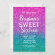 Convites Rosa Aqua Teal & Roxo Brilhante Glitter Doce 16