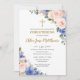 Convites Rosa Azul Floral Dourado Batismo Batizado
