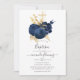 Rosas coloridos de marinho com chic, convite para batismo com sotaque de ouro e tipografia elegante de escrita manual.