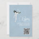 Este belo chá de panela apresenta um belo design com um rosa azul pálido e poeirento, de solteiro longo, sobre o lado, espelhado numa piscina de água. O título diz "Algo Azul antes de Eu Escrevo em elegantes escritos em letras modernas com flores, pântanos e corações românticos bonitos. A parte traseira tem espaço para um código QR para facilitar a localização do registro de noivas. É uma forma maravilhosa de celebrar a noiva!