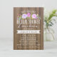 Este Chá de panela apresenta lindas flores aquáticas e uma mistura de tipografia moderna, tudo sobre um fundo rústico de tendências. Envie um convite aos seus convidados que não se esquecerão! Para um convite ainda mais memorável, selecione uma forma recortada, um papel texturizado ou um papel com espessura dupla.