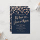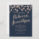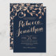 O ouro esmagador que vende folhas barrocas inspirou o design, contrastando maravilhosamente com o fundo azul-marinho escuro e o texto moderno. O convite para casamento azul de marinho elegante.