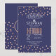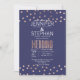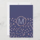 bolinhas rosa de ouro elegantes, quentes e modernas imprimidas e fundo azul-marinho claro, convites para casamento. Este design clássico e sofisticado é perfeito para o casal de competição de tendências e na moda. Personalize com sua própria mensagem na frente, assim como um monograma personalizado na parte de trás. Todas as impressão design.