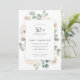 Honra uma mulher especial com este elegante 50º Convite de aniversário. As rosas brancas aninhadas em folhas de eucalipto verdes, de sábio mole formam uma estrutura botânica moderna. Todo o texto pode ser editado, para que você possa descrever perfeitamente sua celebração especial